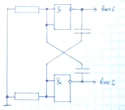 Рис. 10. Мультивибратор на элементах 2И-НЕ